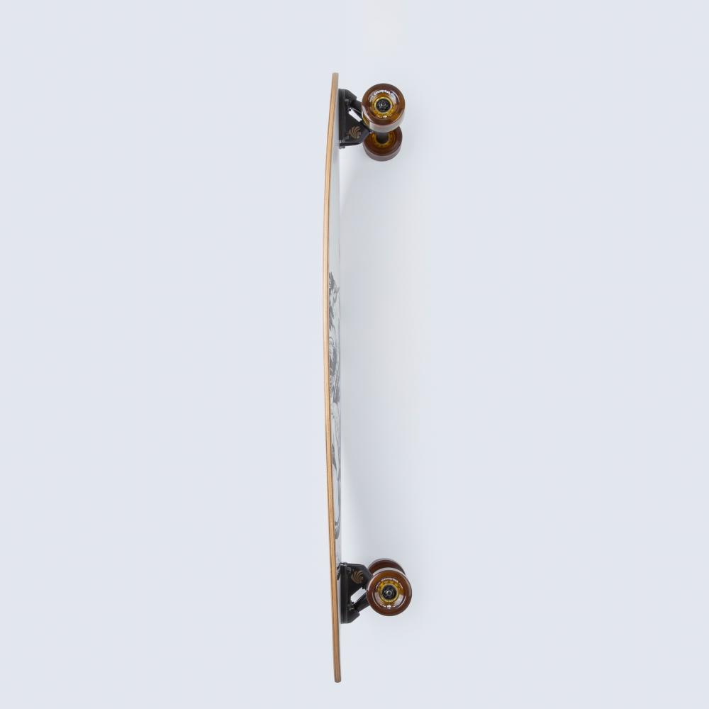 A compact pintail with an extended wheelbase and mellow flex for around town cruising and lower speed carving.