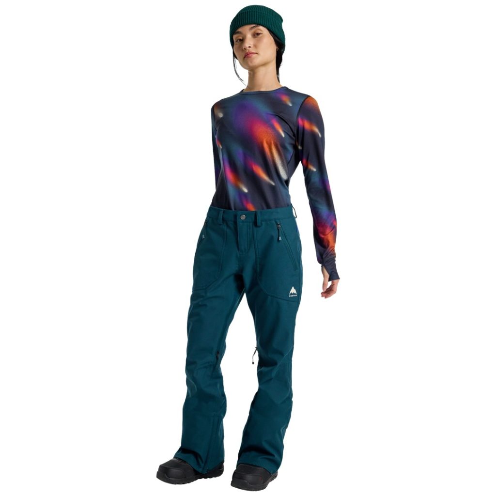 With a cut styled after your favorite low-rider jeans and just enough fashionista hits, the women's Burton Vida 2L Stretch Pants offer a slim fit and tech features to keep you focused on riding your way. There's enough room for layering when the temps are chill. Grab your board, tighten your boots, ride the mountain high and low.