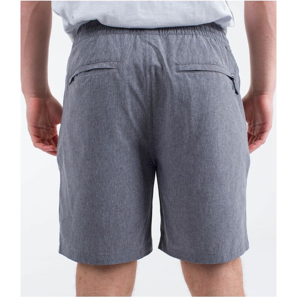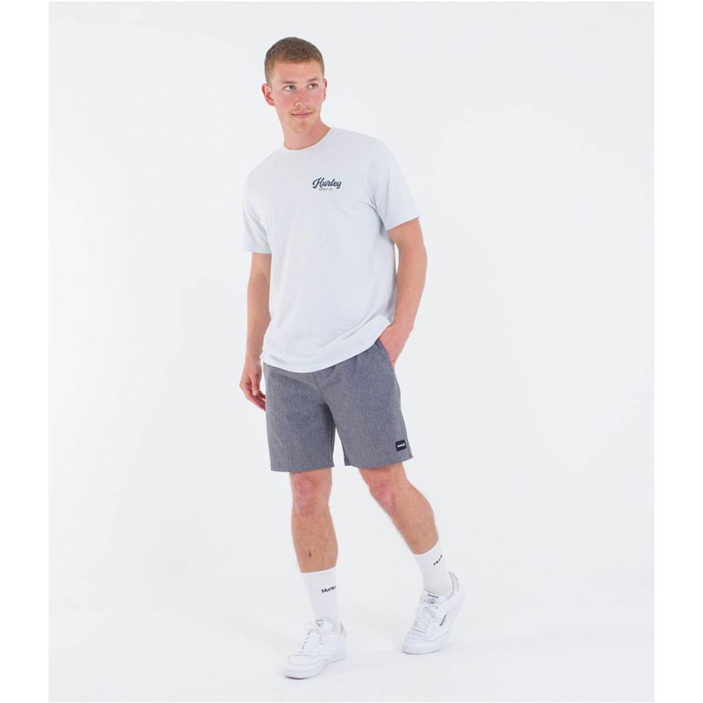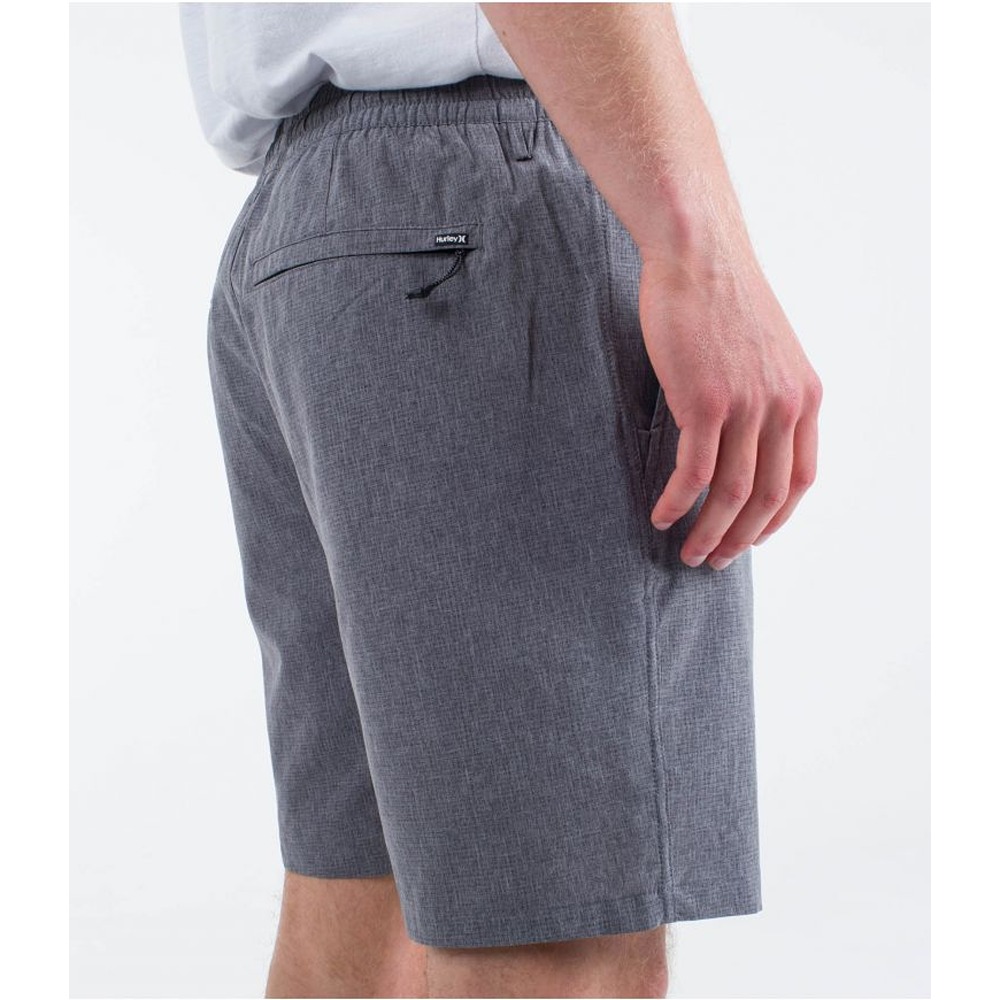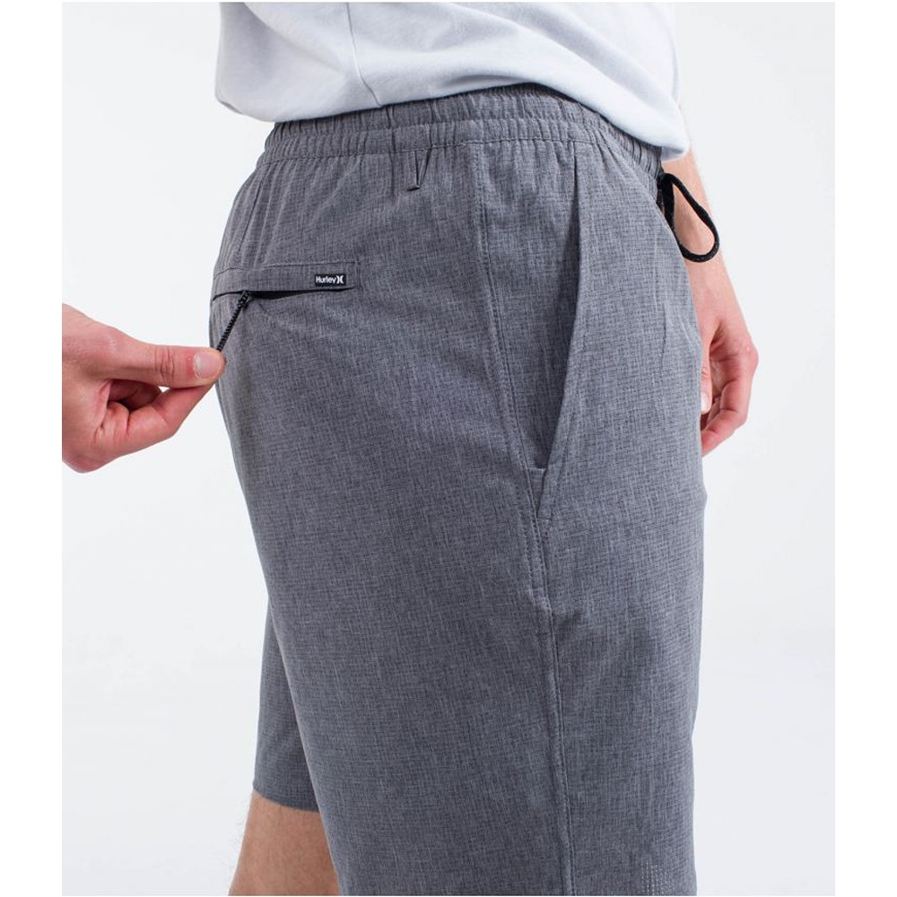 The Hurley Phantom Flow Volley 18" walkshort is made with perforated, four-way stretch Phantom fabric and coated with DWR (Durable Water Repellent), making it water-resistant while offering great mobility, breathability, and quick drying. Its recycled polyester, polyester, and spandex blend ensures flexibility and comfort. It features an elastic waistband with a drawstring for a custom fit. The mesh pockets are designed to drain water quickly, while the zippered pocket on the back right and the welt pocket on the back left provide secure storage. Ideal for sports activities, aquatic adventures, or any occasion requiring freedom of movement and high performance.