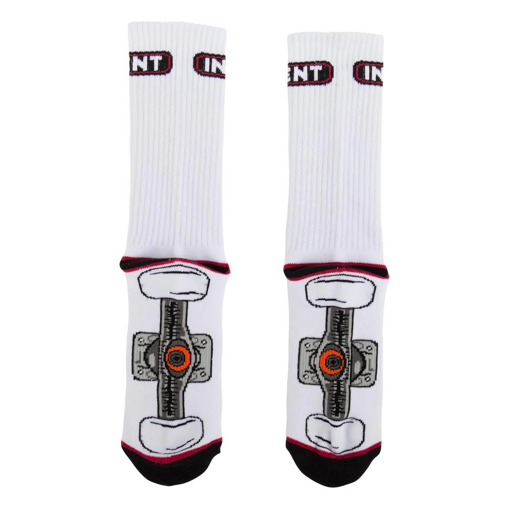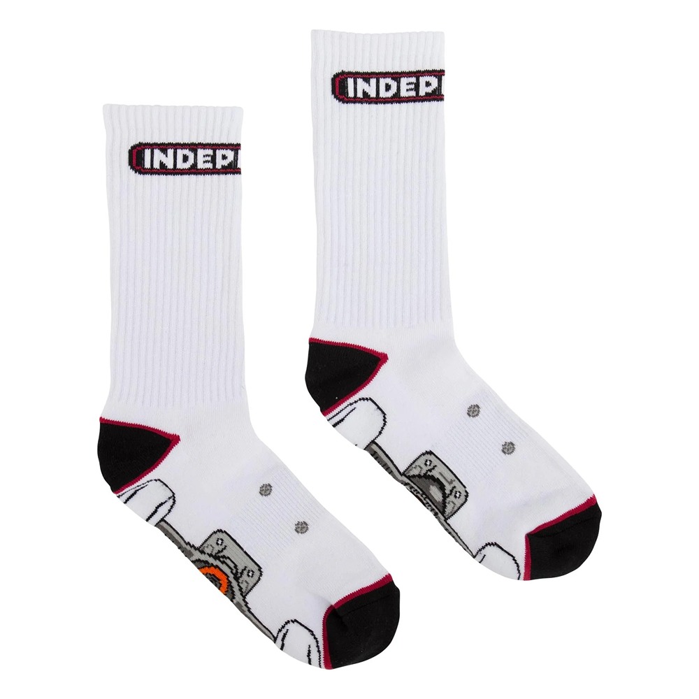 The Independent Truck men's mid crew sock features half cushion footbed, arch support ribbing, Truck artwork on top, bottom of footbed and Independent logo on top of sock tube. 1UNIT = 1 PAIR