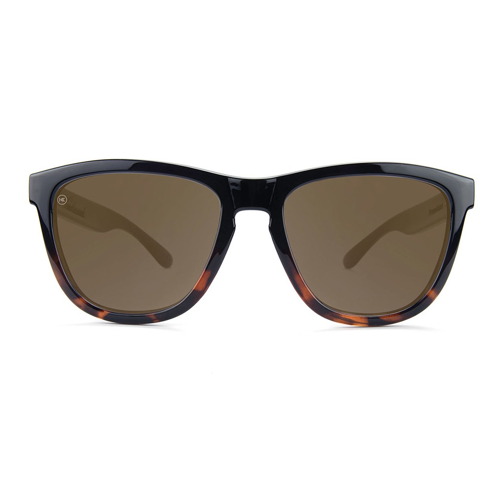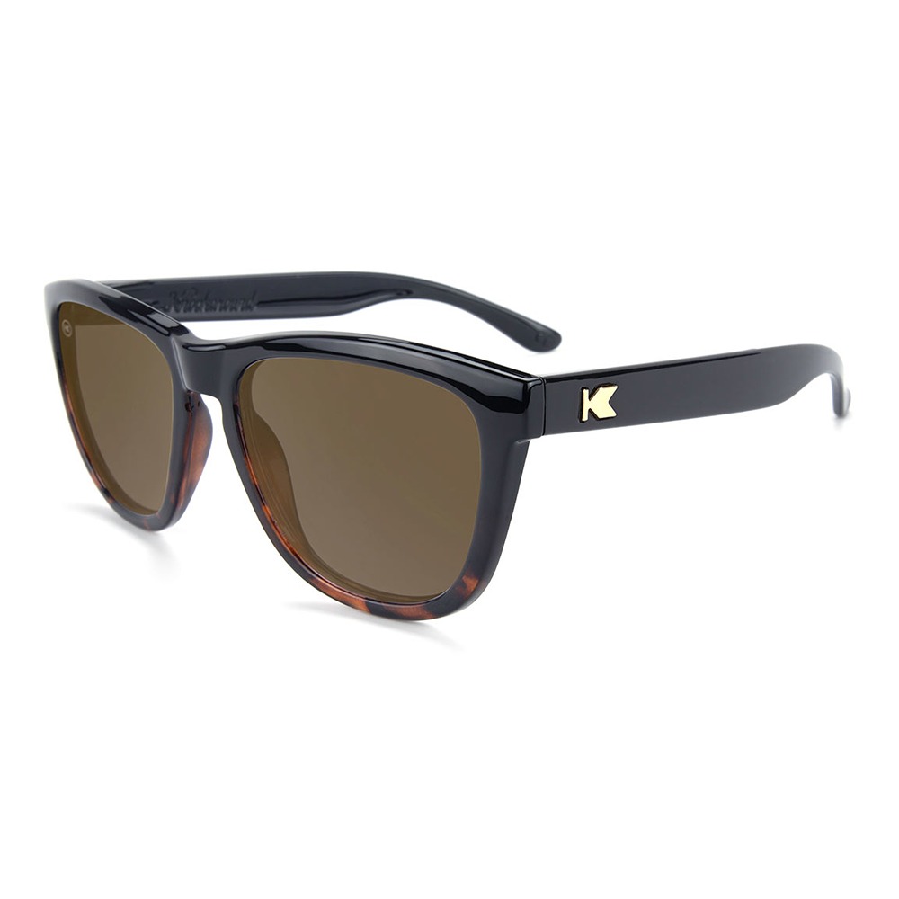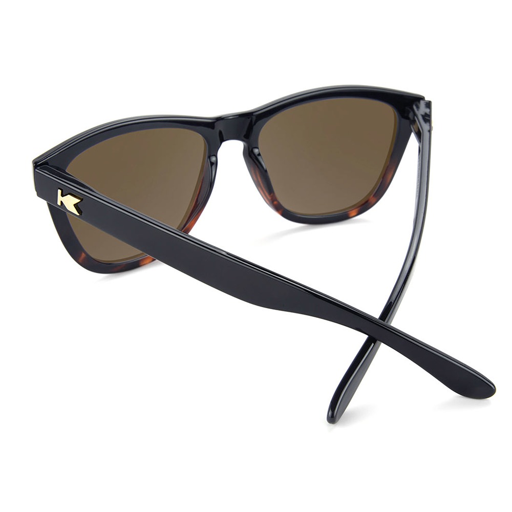 If you can’t decide between modern and classic, bold and relaxed, then why not get it all? These polarized glossy black and tortoise shell sunglasses have everything you could want for style and eye protection. The lightweight polycarbonate frames provide a comfortable and accommodating fit while the polarized amber lenses help shield your eyes from the harsh glare of the sun. These timeless sunglasses are finished off with gold K logos on each arm.