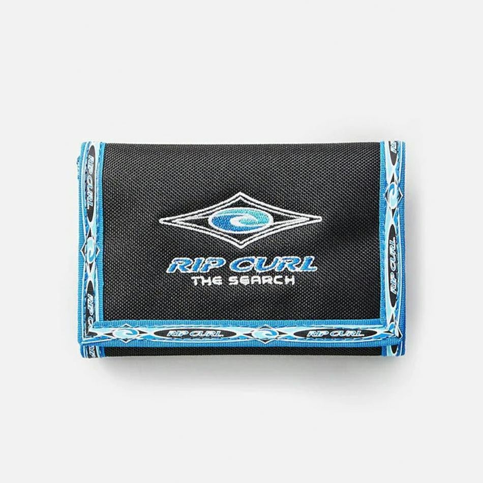 The Archive Surf Wallet is a rad surf wallet made from a retro cotton canvas, featuring ID window, multiple card slots, and single note compartment.