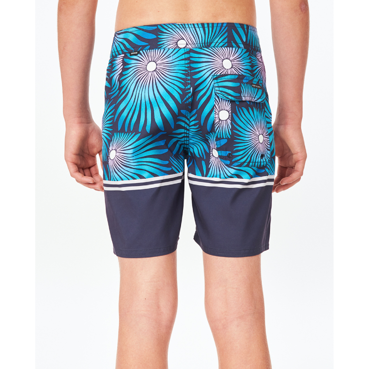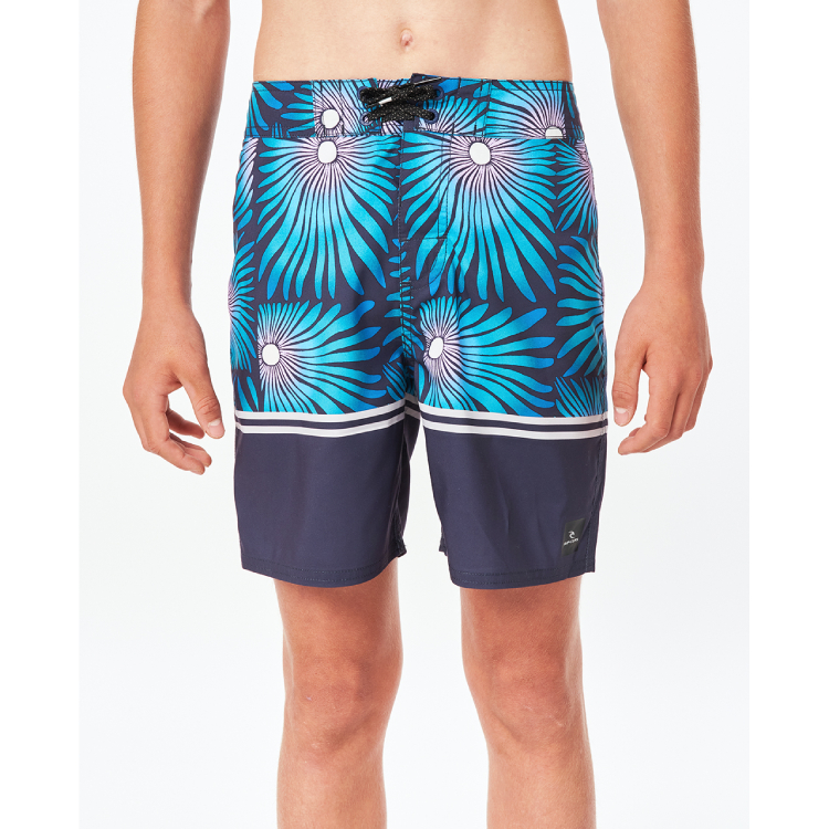 This attractive Rip Curl Combined boy’s boardshort is perfect for surfing! This Rip Curl kids’ boardshort has a flat waistband and back pocket. Made of 100% polyester, your child will love the fact that it feels soft and dries rapidly after long hours spent in the water. Available with a floral band on a navy blue background, or plain with a sky blue background.