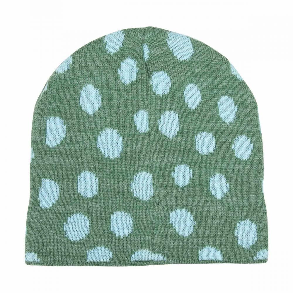 100% acrylic, fuzzy knit beanie with all over jacquard and woven label branding