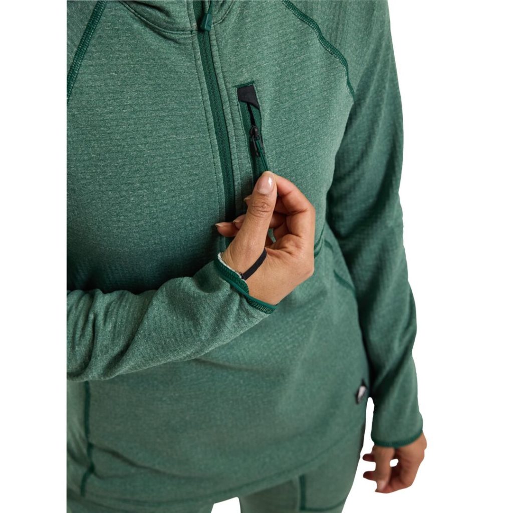 When the going gets cold, it's time to layer up. The women's Burton Stockton Grid Half-Zip Fleece is made for layering under your shell or jacket. Thumbhole cuffs and a drop hem add that extra bit of warmth that can really make a difference on a cold, windy day. We're talking grid fleece that's as breathable as it is soft and comfy. So comfy, you'll probably wear it for more than just hitting the mountain.