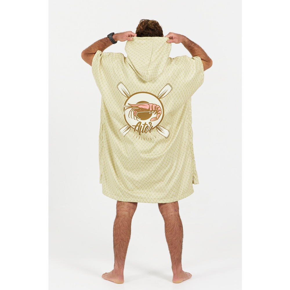 - With its all-over fishing net print on a natural sand tone and an old-school shrimp illustration on the back, the Shrimp Poncho from the American Fishing Series offers an authentic, rock’n’roll look.