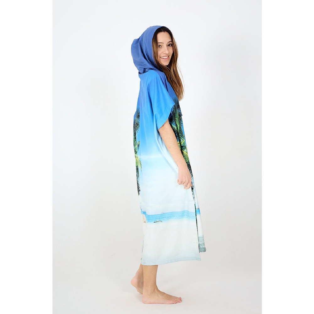 Travel Series Poncho have been though and deigned to be carried on a trip. Made of 100% recycled polyester micro-fleece, those ponchos are eco conscious, thin and ideal to be packed and stored efficiently in your bag: Easy to transport while keeping maximum water absorbing properties, equivalent to the best beach towels. A chest pocket with its key loop allows you to keep your car key safe. Large sleeves and side slots make your life easier when getting changed.