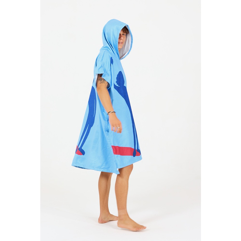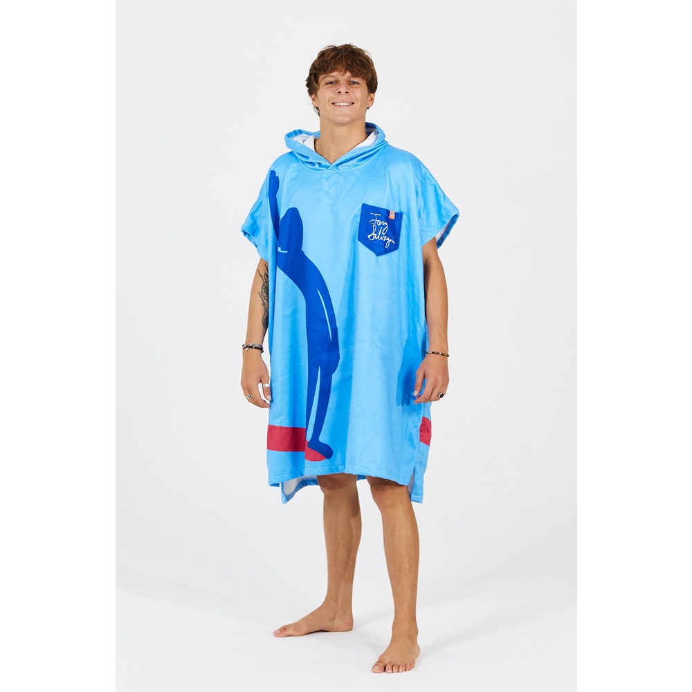For his Pro Model, American longboarder Tony Silvagni has designed a poncho that reflects his personality and pays tribute to the art of longboarding. Bright colours bring a sense of good vibes and joy, while the silhouette of a surfer in a classic hang-five soul arch captures the spirit of the log. Tony’s signature on the chest pocket is a nod to his discipline and personal style.