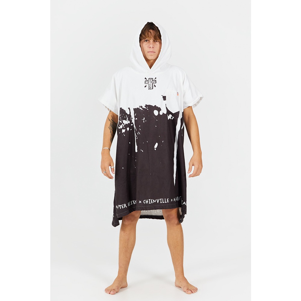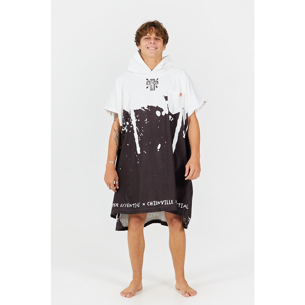 Born from a collaboration with shaper Chienville, this surf poncho embodies a free-spirited and committed attitude, blending a punk look with skate inspiration. Designed for the beach and post-session moments, it reflects the raw and creative world of the shaper based in Soorts, known for his innovative board shapes and designs.