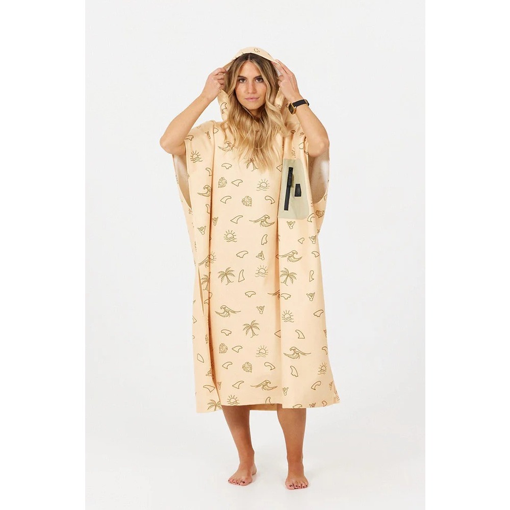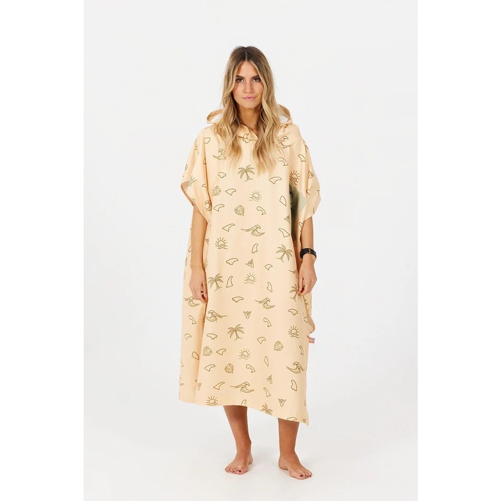 The Tech Pocket Fin poncho pays tribute to longboarding with an illustration of fins, capturing the classic spirit of the log. The message is clear: fun comes first, whatever the conditions. “No bad waves…”