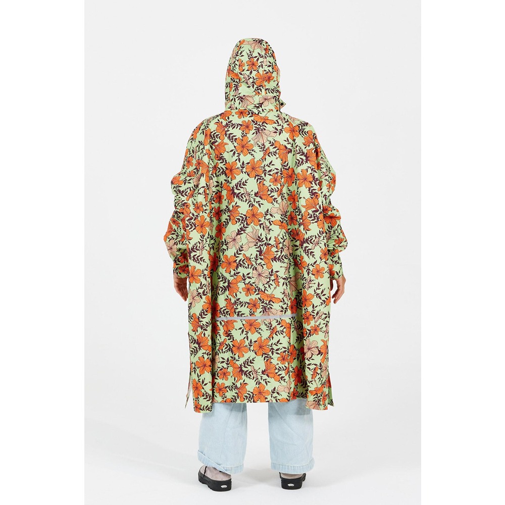 Well known for its surf spots, Oahu's North shore, has inspired this rain poncho. Hawaiian style printed, its pastel tones and colorful hibiscus flowers will brighten up your rainy days! - Singin' in the rain!