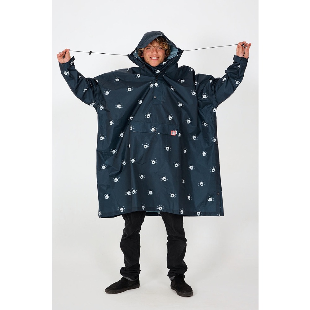 - An After Essentials rain poncho or nothing! Our designs - like this one with its famous Skulls print - have been designed to stop light rain and heavy downpours thanks to its many features. Once the sun is back, the whole thing can be folded into the kangaroo pocket for a minimum of space.