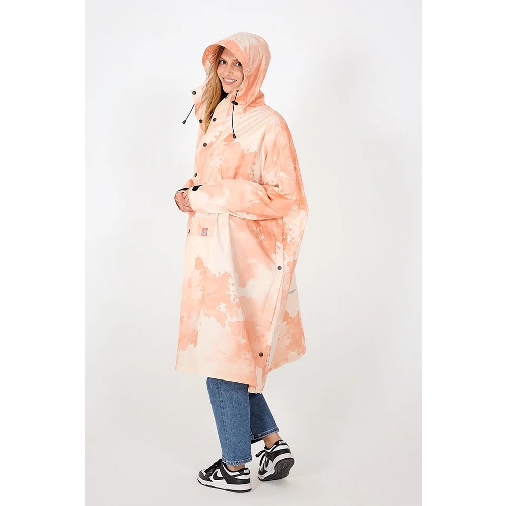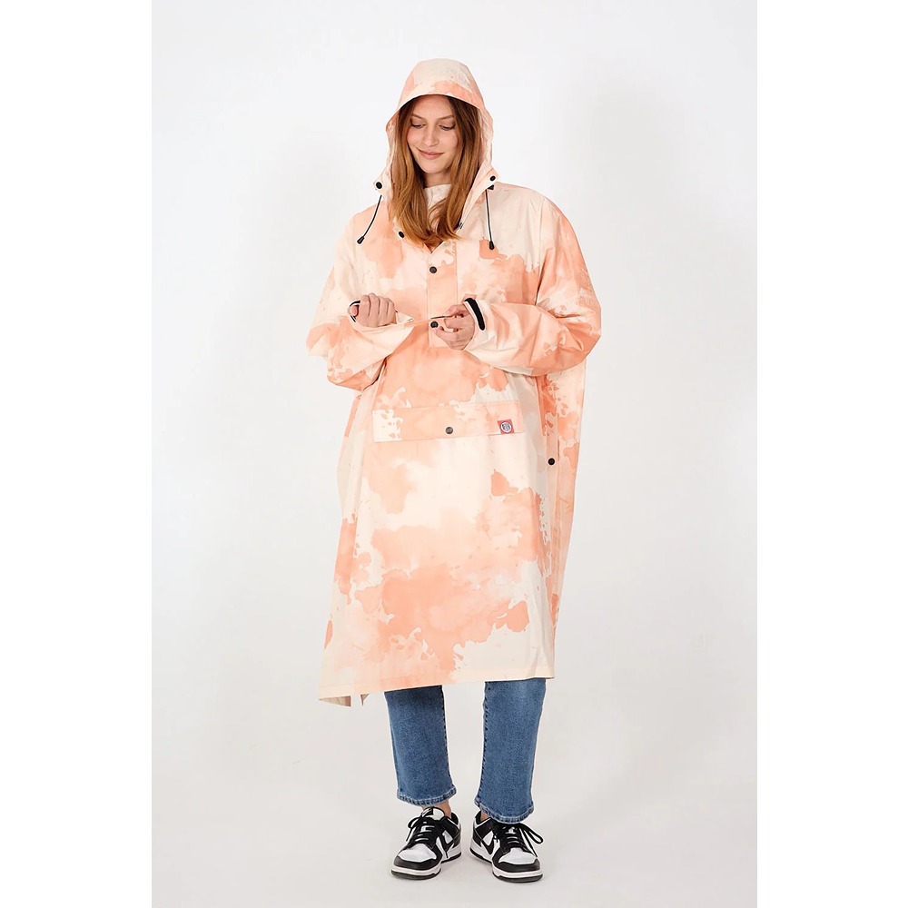 Do you enjoy playing in the water? In that case, our Watercolour rain poncho model is just the thing for two reasons: it will keep you dry even in the heaviest downpours, and it will disguise raindrops thanks to its already soaked-looking, colourful print. Once the shower has passed, you can fold it away into the kangaroo pocket — almost looking forward to taking it out again as soon as possible, it’s that comfortable.