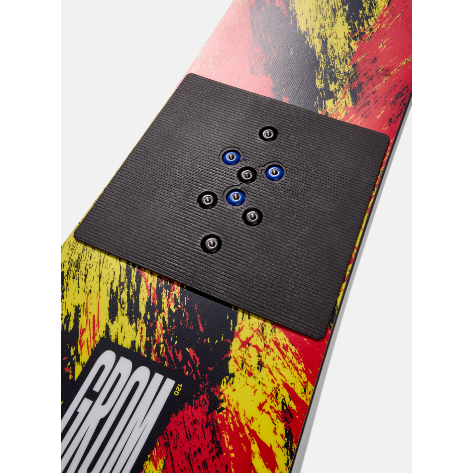 120cm and 130cm - Features 16 total threaded inserts, eight inserts per binding, to mount bindings with a wider stance option for taller riders.