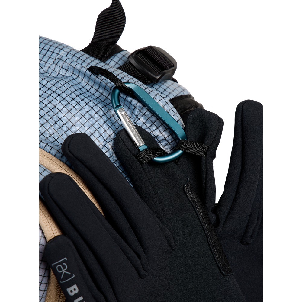 Jacket on. Jacket off. Zips open. Zips closed. Temperature regulation on the uptrack is about adapting. The Burton [ak] Helium Expedition Gloves are made with splitboarding in mind. Softshell backing matches the supple feel of leather for a glove that lets you rip skins, swap bindings, and break trail while keeping your hands gloved and warm.