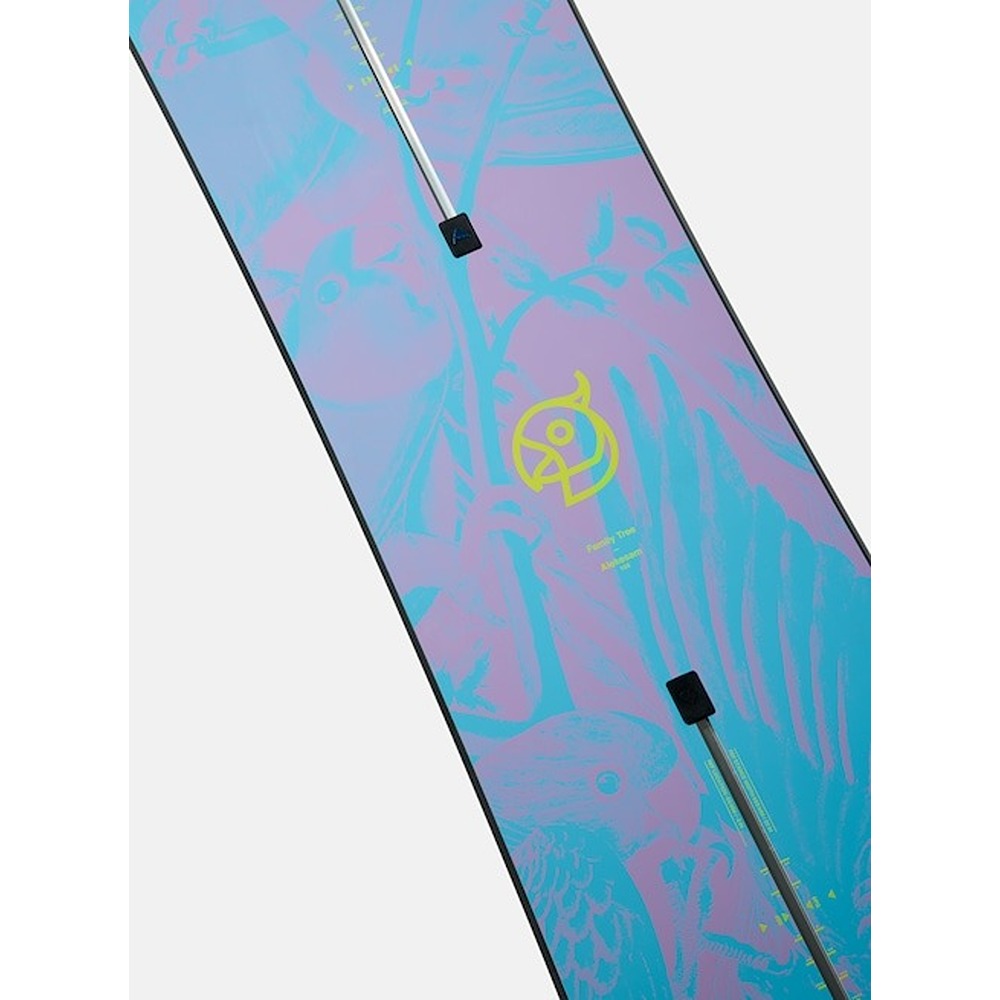 ABOUT THE GRAPHIC: Like kindred spirits, each Family Tree board features subtle yet colorful Audubon graphics that highlight its personality. The Alekesam channels the playful, inviting personality of the macaw, symbolizing the board's surf-inspired all-mountain ride.
