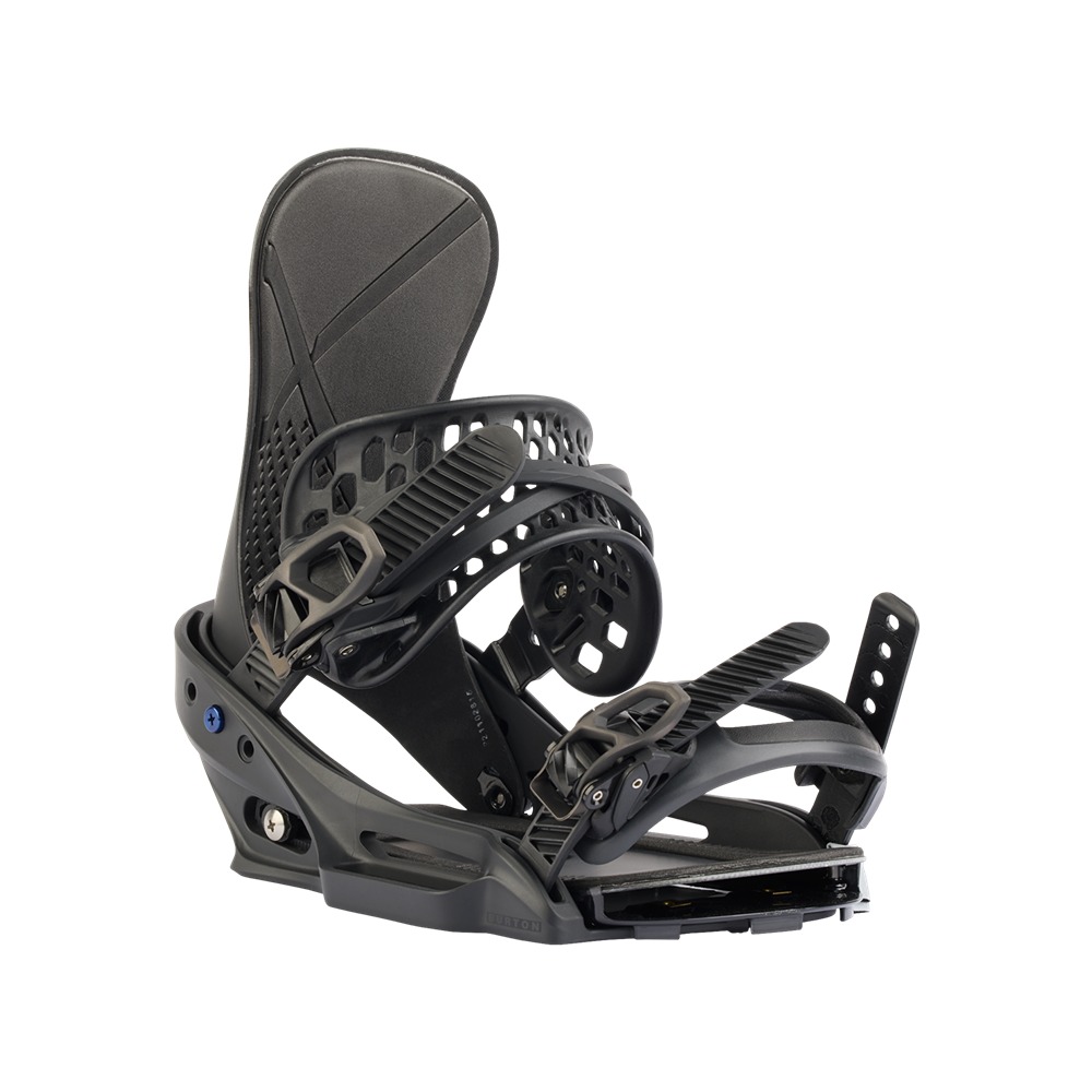 Minimalist and lightweight, the men's Burton X EST® Snowboard Bindings set the standard for responsiveness, simplicity, and control. The combination of our carbon-blend hi-back and high-performance shock absorption underfoot set you up for aggressive riding and full control. Combined with the enhanced flex and board feel of the EST® system, you are set up to get the most out of your board in any terrain.