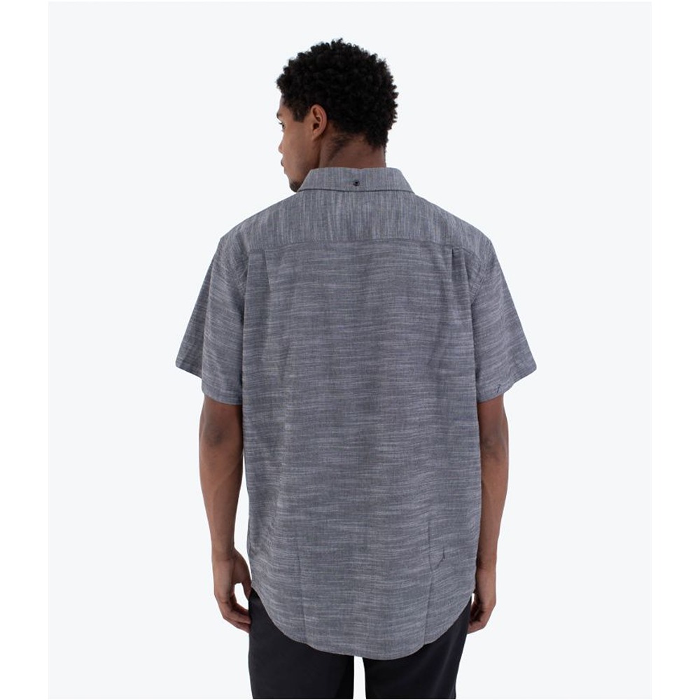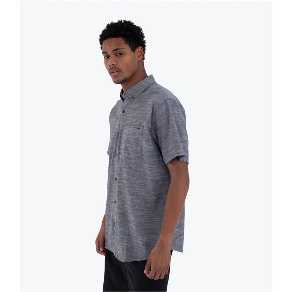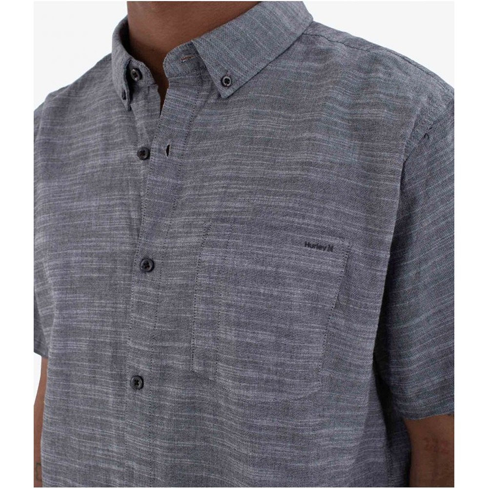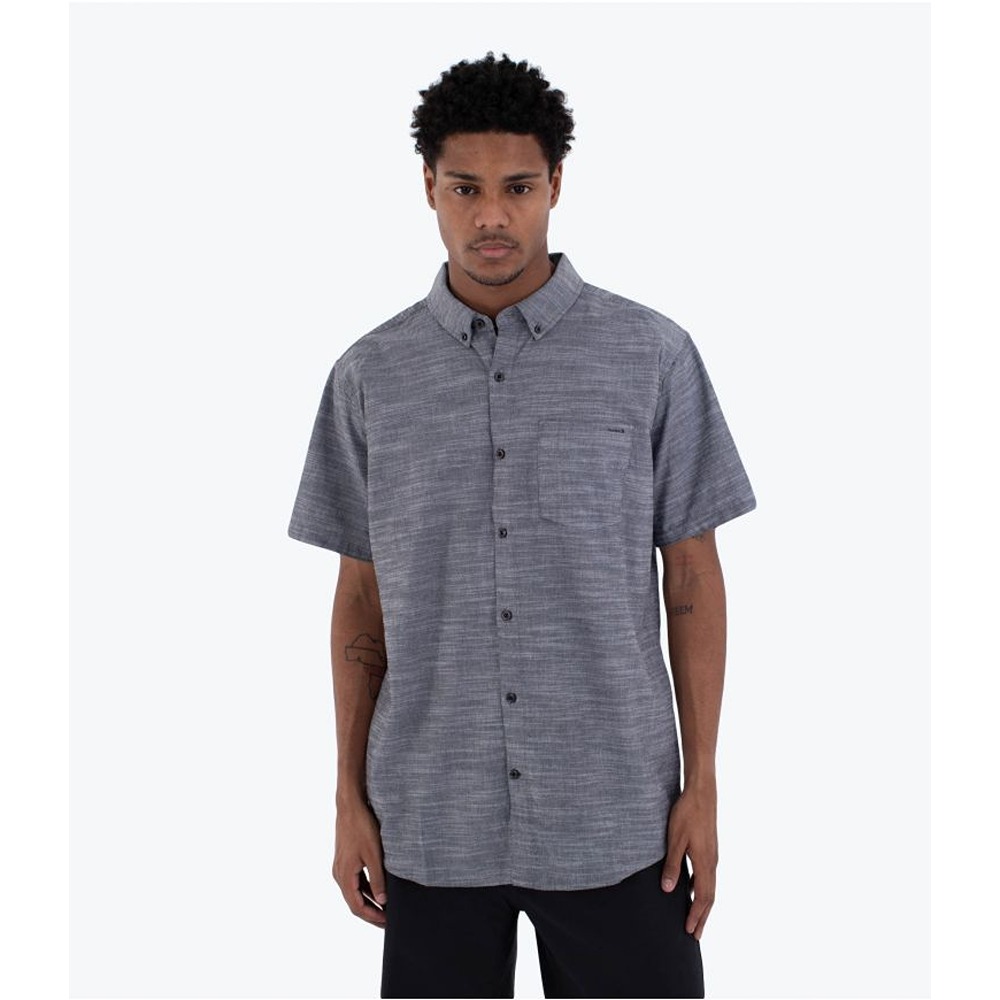 The Hurley Icon Stretch Short Sleeve Shirt is made from a 98% cotton/2% spandex stretch fabric that offers comfort and flexibility. Its solid, basic design makes it a versatile option for any occasion. It features a patch pocket on the left chest with a slot for sunglasses, a button-down collar and pleats at the back. Ideal for a comfortable yet sophisticated look, perfect for everyday or casual outings.