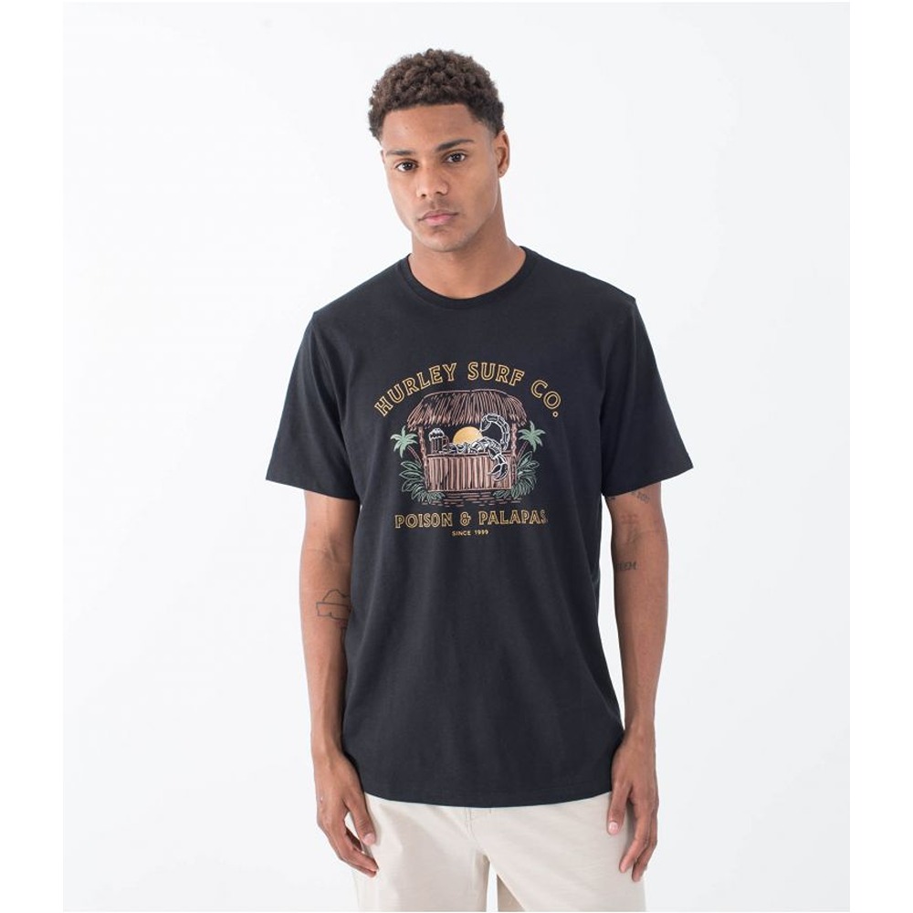 - The Hurley Poison and Palapas Slub Men's Short Sleeve T-Shirt is made from a comfortable and durable cotton and polyester fabric. Its regular fit is perfect for everyday wear, while the front print adds a unique touch to your style.