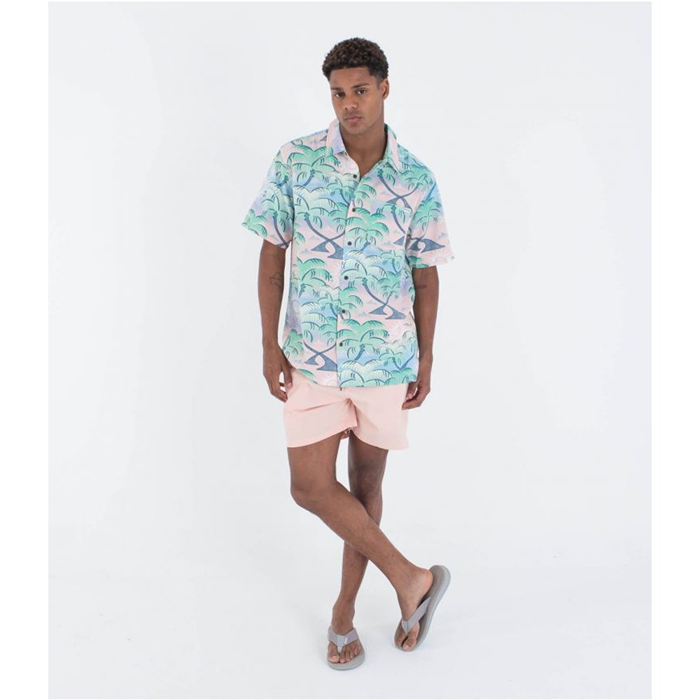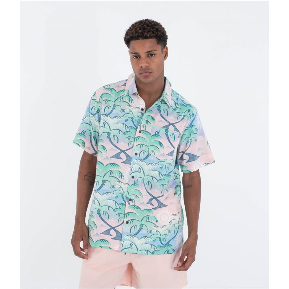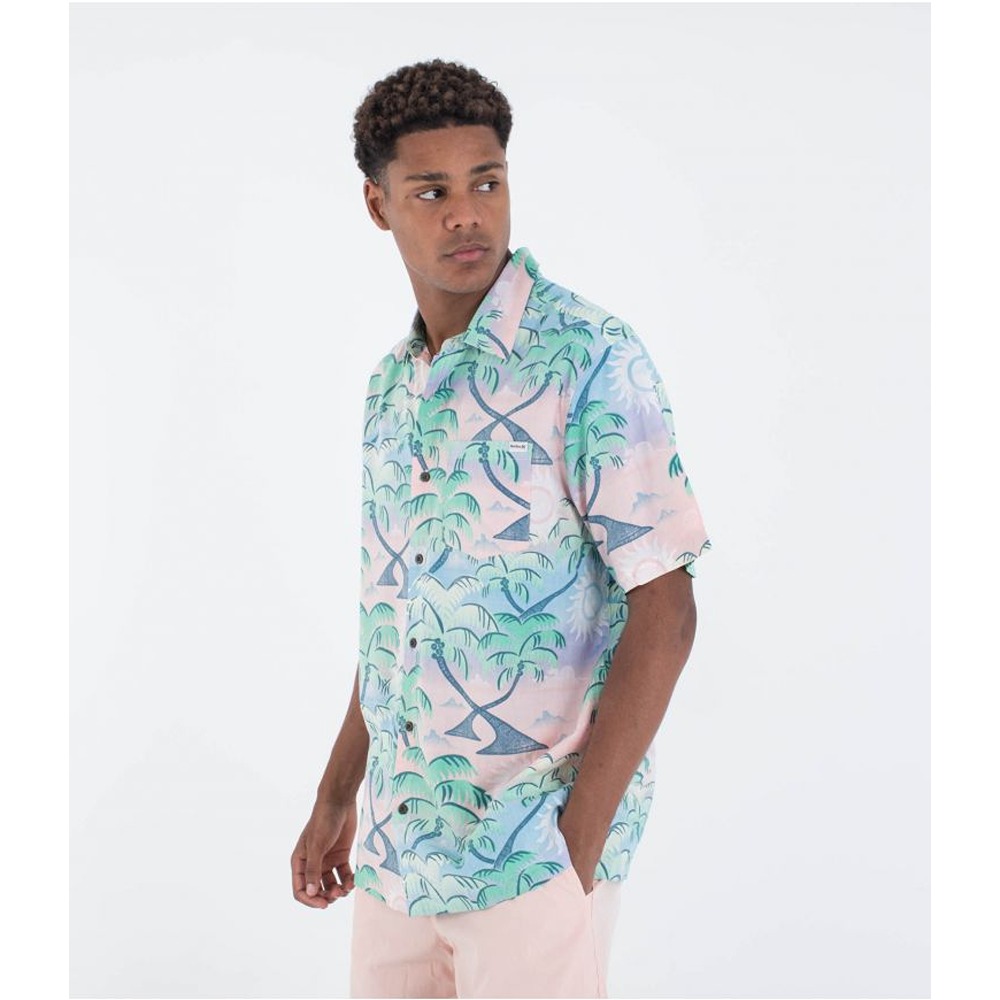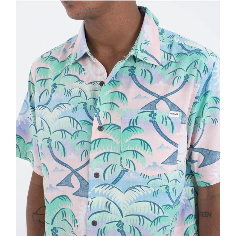 The Hurley Rincon Men's Short Sleeve Shirt takes nature prints to the next level. It's crafted from a cotton-rayon blend with recycled coconut buttons and a straight-cut hem with side vent detailing.