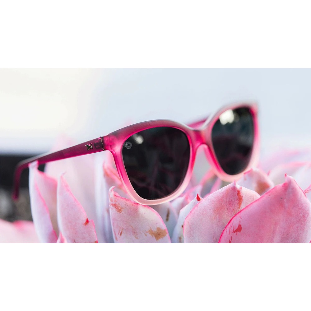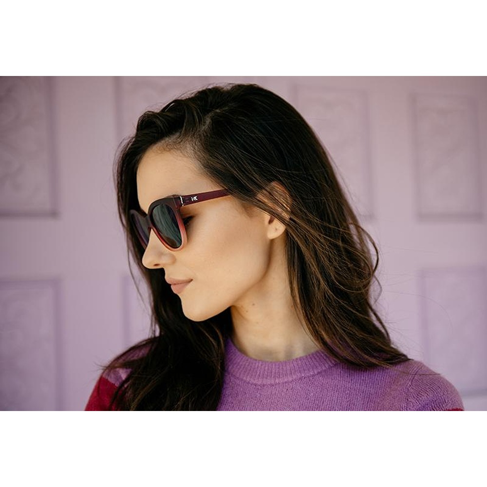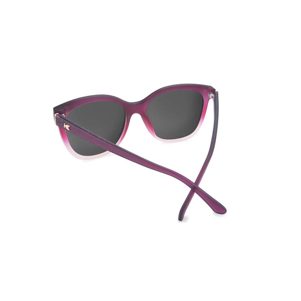 Sophisticated, elegant, and oh so lovely―these polarized sunglasses are all that and more. The gradient purple frames stand out stunningly from the polarized black smoke lenses and are accented by gold K logos. Our Deja Views frame style is designed to keep you on the cutting edge of fashionable eyewear and features subtle cat-eye flair and a contoured shape. FDA approved, impact-resistant lenses with full UV400 protection.