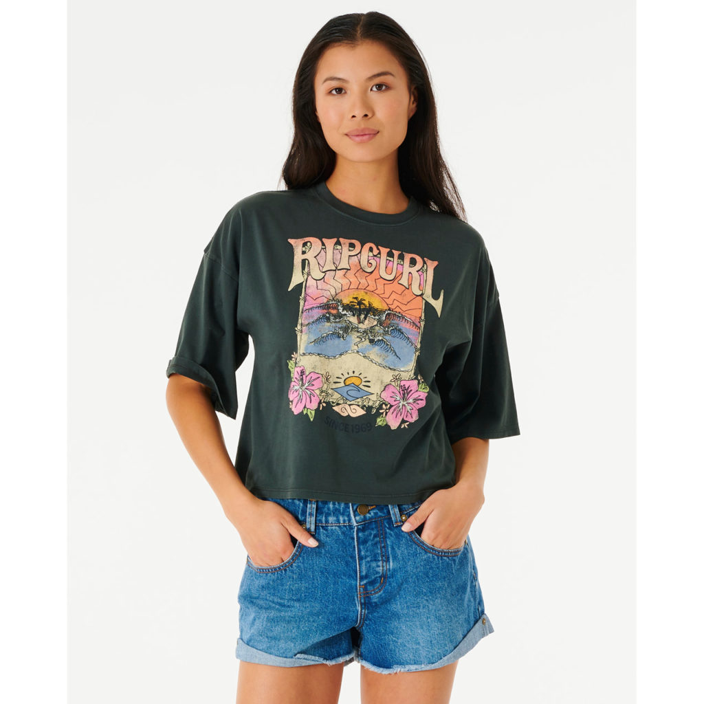 The Barrelled Heritage Crop is a rad cropped t-shirt with a boxy fit, featuring dropped shoulder, epic front and back print, and a heavy garment wash finish which gives the colours a pre-loved vintage appeal.