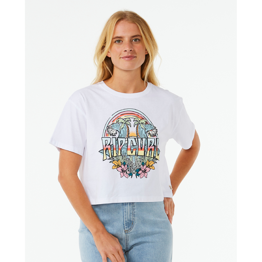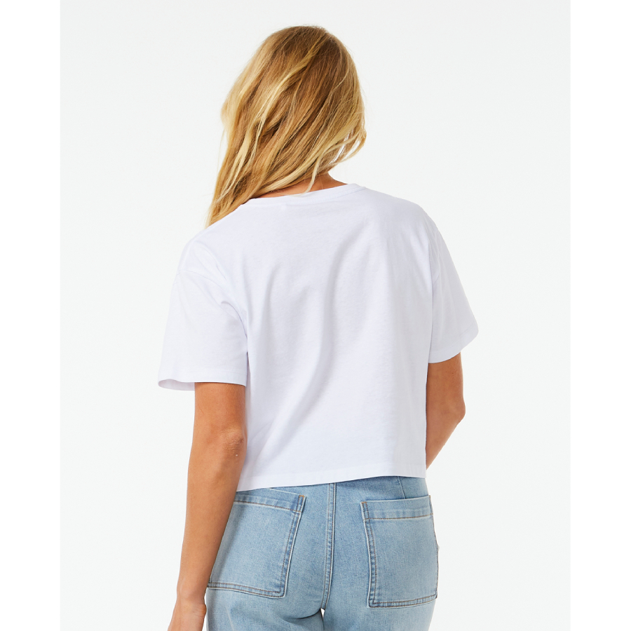 - Make A Statement With The Block Party Crop Tee. This Crop Tee Features A Front Print, Woven Flag Label, And Inner Neck Print, Offering A Chic And Laid-Back Choice For Your Casual Wardrobe.