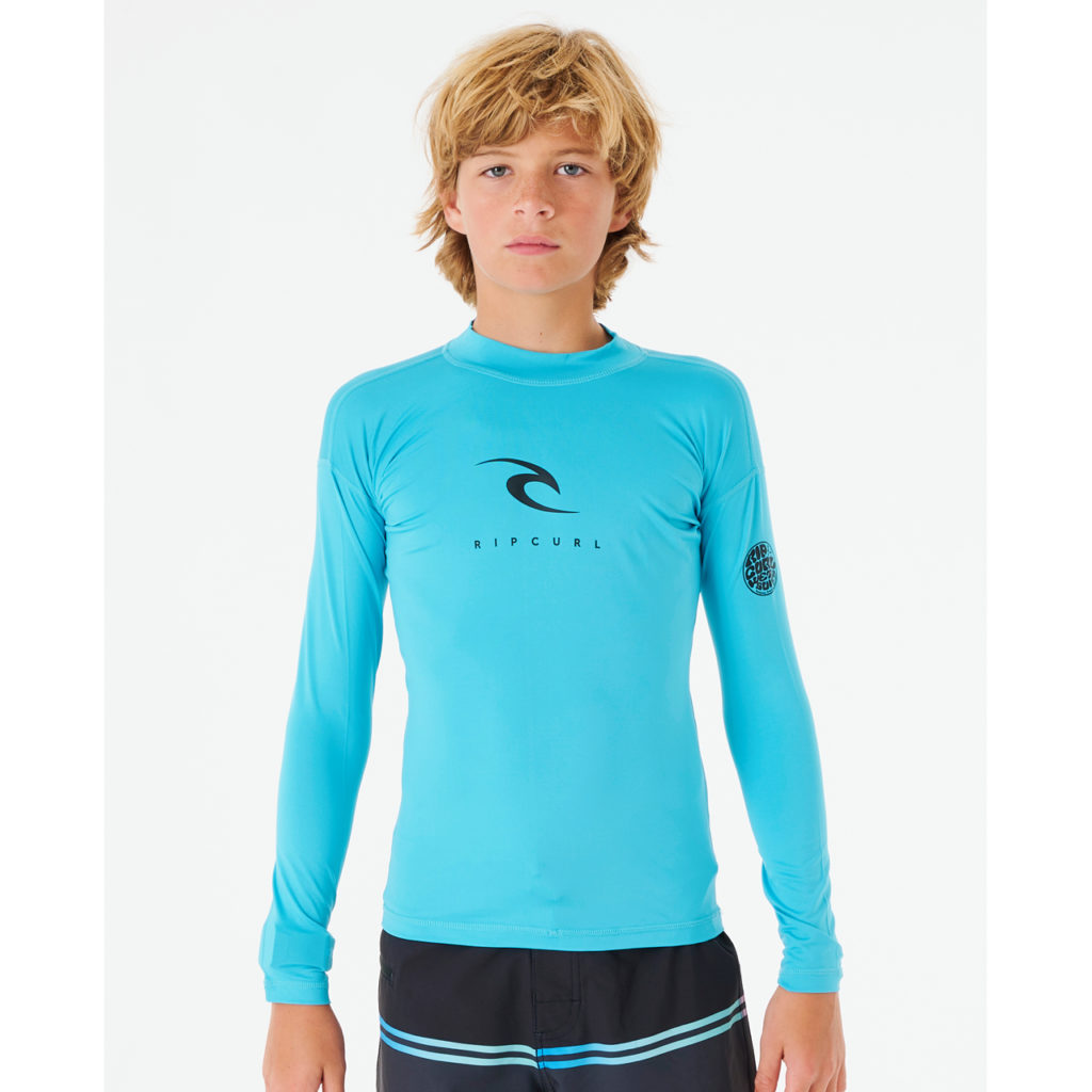 The Corps Long Sleeve is a great boy's UV rash vest designed in a performance fit for minimal drag, and increased efficiency in the water. Featuring an excellent sun protection rating of UPF 50+, an elastic boardshort loop to keep it perfectly in place, and classic front and sleeve Rip Curl prints.