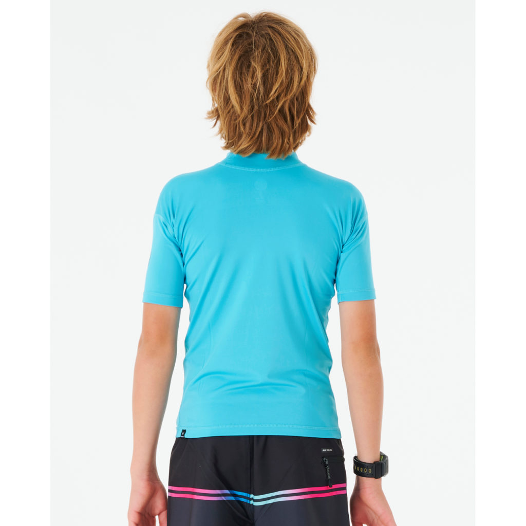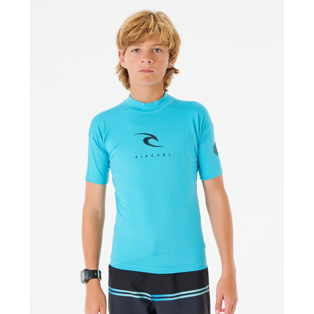 The Corps Short Sleeve is a great boy's UV rash vest designed in a performance fit for minimal drag, and increased efficiency in the water. Featuring an excellent sun protection rating of UPF 50+, an elastic boardshort loop to keep it perfectly in place, and classic front and sleeve Rip Curl prints.
