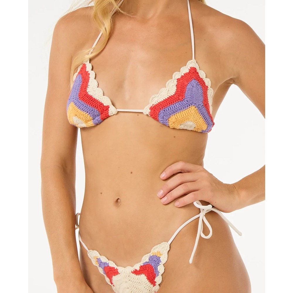 - This handmade sliding triangle top adds artisanal charm to your swim collection. Featuring light support, full lining, and a timeless metal logo trim for a refined beach look.