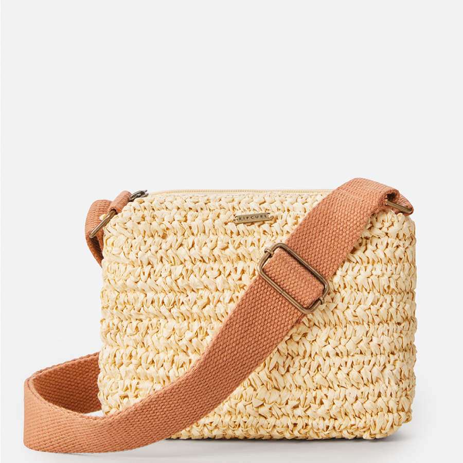 Essentials Straw Crossnap Back Keep your essentials close at hand with our Essentials Straw Crossnap Back. Crafted from 100% straw and featuring an adjustable strap and metal badge, this crossbody bag is handmade for a unique touch. With its internal pocket and compact size, it's the perfect accessory for storing your beach essentials while keeping your hands free.