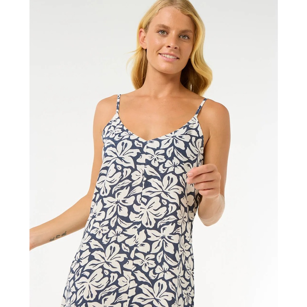 - The Las Dalias Mini Dress combines cotton-linen fabric, adjustable straps, and a summery yardage print. A lightweight and versatile pick for carefree coastal outings.