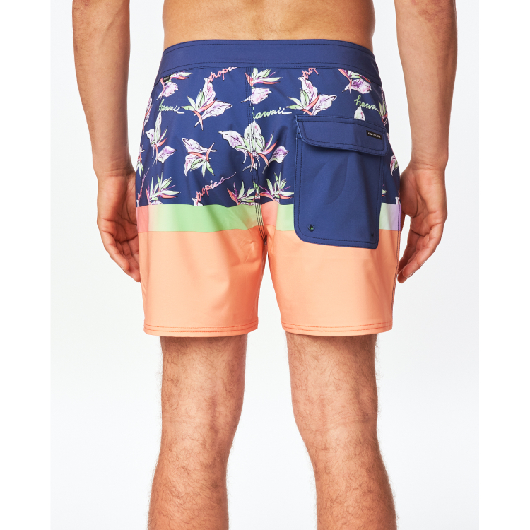 The Rip Curl Mirage Retro Equator boardshort is a pop but technical Mirage! With the MIRAGE men’s boardshort capsule, the Australian surf brand has combined style and technology. This boardshort will feel like a second skin when surfing very hollow waves, thanks to its super light material made partly of recycled fibers. The solid-color flat waistband closes with a drawcord and contrasts with a floral print and blocks of color in equatorial tones! Available with a turquoise blue or light orange background. Hossegor, here I come!
