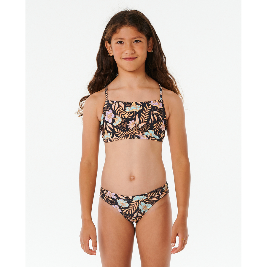 - Complete the beach look with the Tropics 3 Piece Set-Girl. This set, including a woven label, adjustable straps, front print, UPF 50+ UV sun protection rash vest, inner neck print, and chlorine-friendly fabric, ensures your little one is both stylish and protected. Perfect for a day of surf and sun, this set is a beach wardrobe essential.
