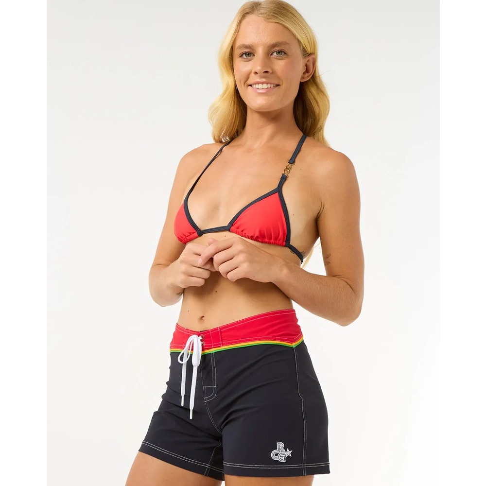 - With a high-rise fit and eco-friendly stretch fabric, the Victoria Vergara 5" Boardshorts are stylish and sustainable. They feature a contrast waistband, piping detail, and embroidered logo for an elegant, comfortable fit.