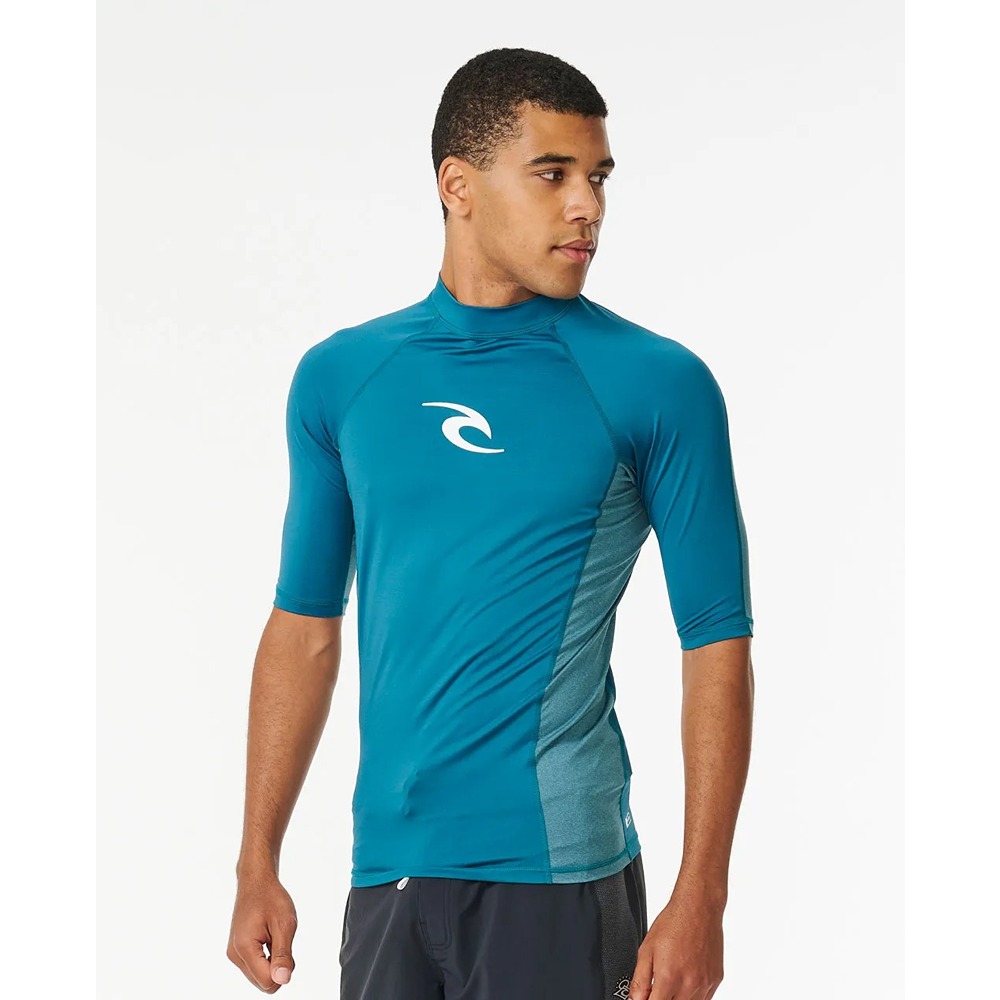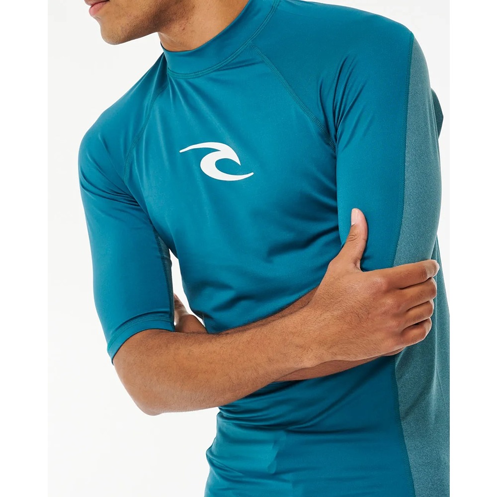 - Stay protected and stylish with the Waves UV Short Sleeve Rash Vest. Offering UPF 50+ UV sun protection, this rash vest keeps your skin safe during water activities. The front and back prints add a touch of flair, while the heat transfer logo adds a sleek finish. The flatlock stitch detail ensures durability, and the elastic boardshort loop provides a secure fit. Experience comfort and sun protection with this reliable rash vest.