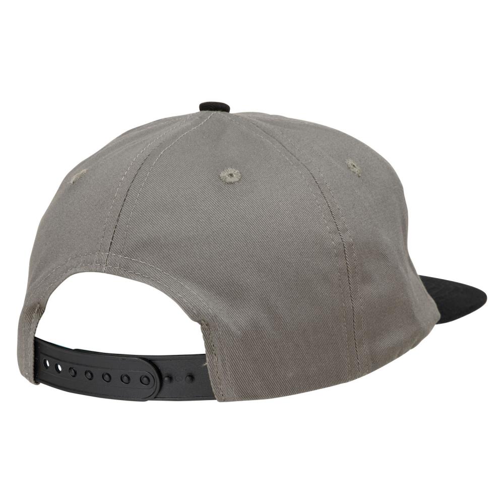 - 100% cotton twill, 5 panel cap with adjustable snap fastening and front print