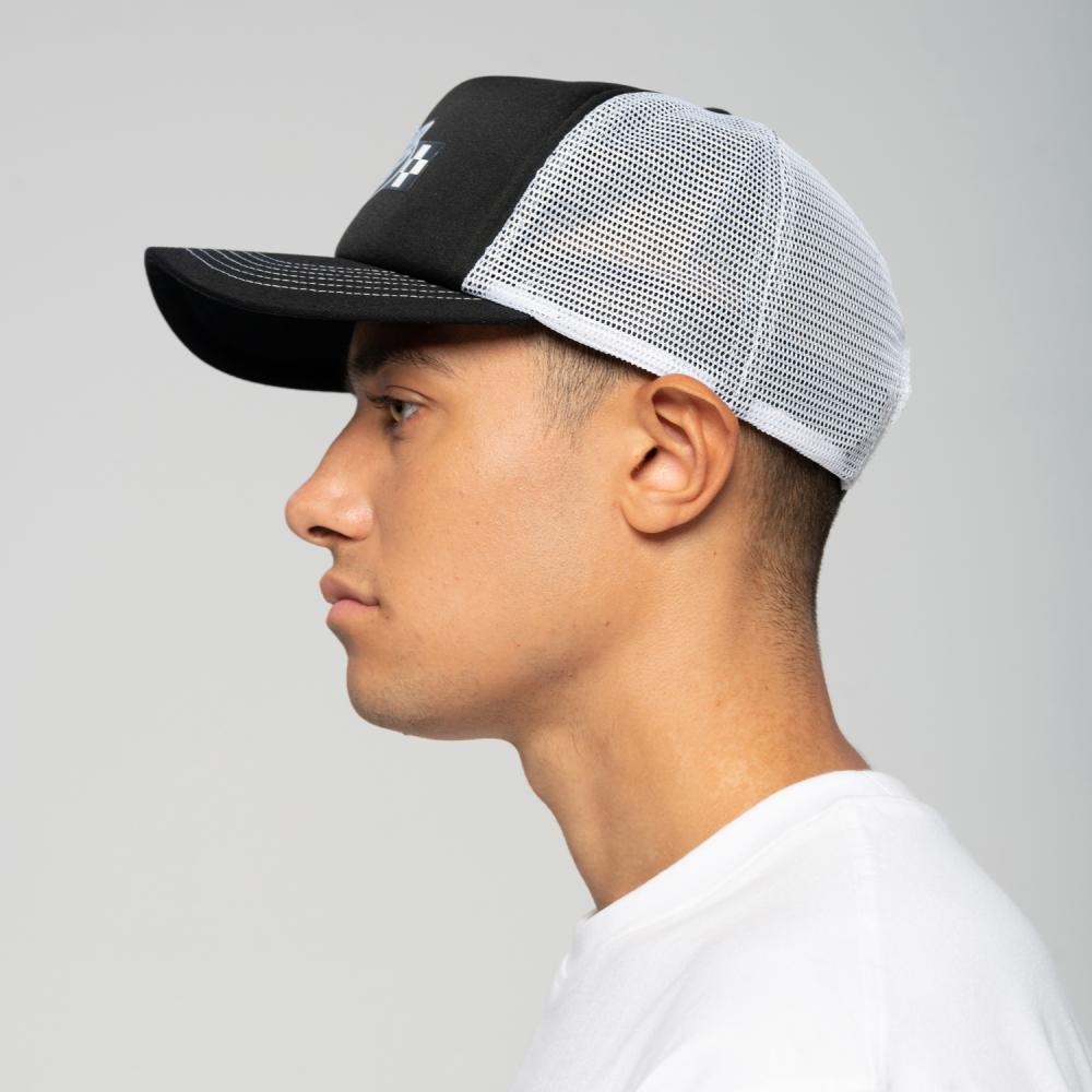 Cotton twill/foam meshback trucker cap with plastic snap fastening and front print