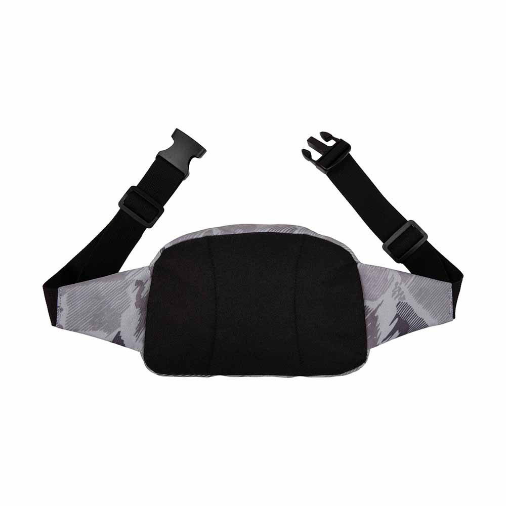 100% polyester, 900D, waistpack with all over sublimated print, zip entry main compartment, zip entry front pocket, adjustable waist straps and rubber label branding