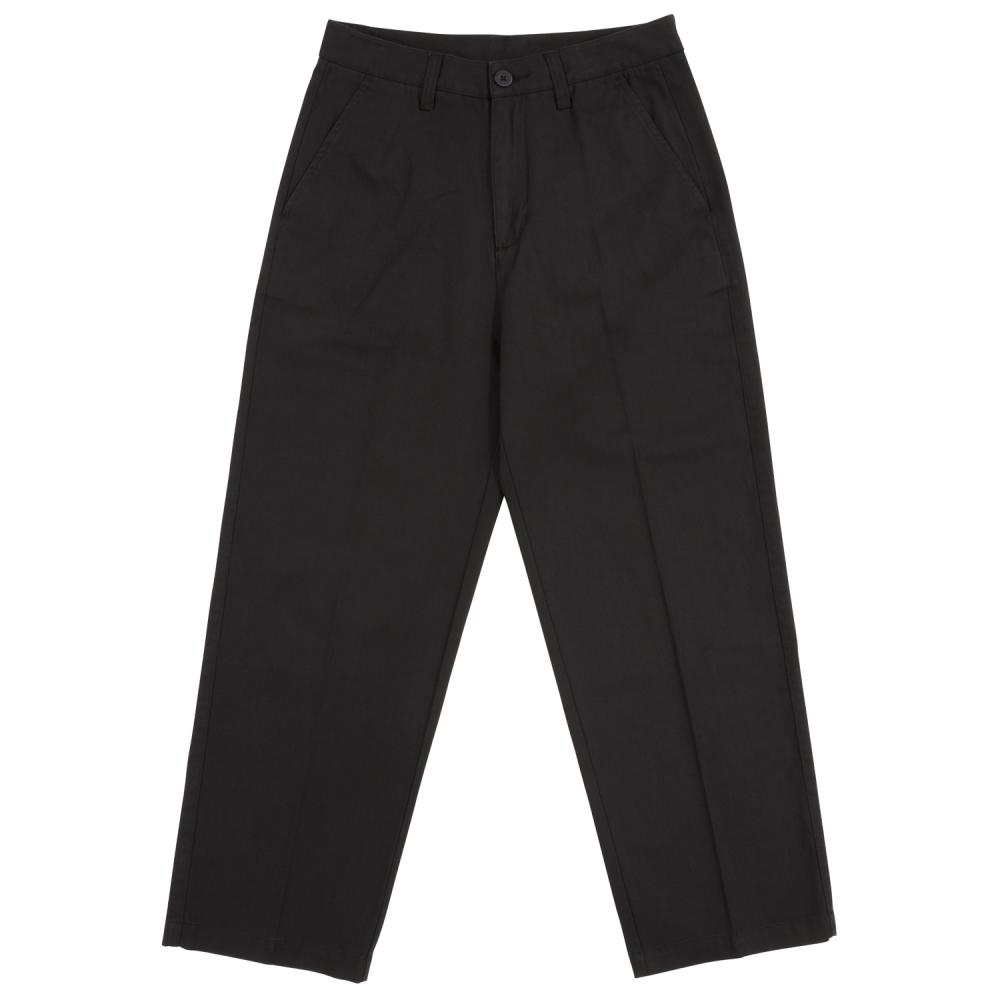 100% cotton twill, loose fit, wide leg chino with front pockets, back pockets and woven label branding